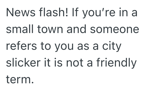 She insists she was being friendly. She truly thinks “country bumpkin” and “hayseed” are friendly terms.