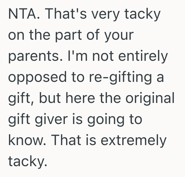 My parents told me that this is none of my business and that it’s not a big deal, things get regifted all the time.