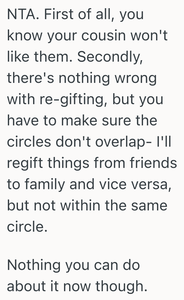 AITA for telling my parents not to regift socks to my cousin when he didn’t like them the first time?