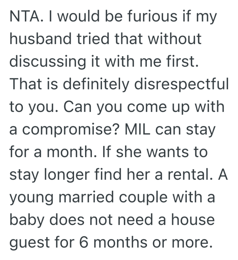 This woman thought she was opening her home for a nice visit, but turns out her husband had other plans—like his mom potentially staying for six months or more.