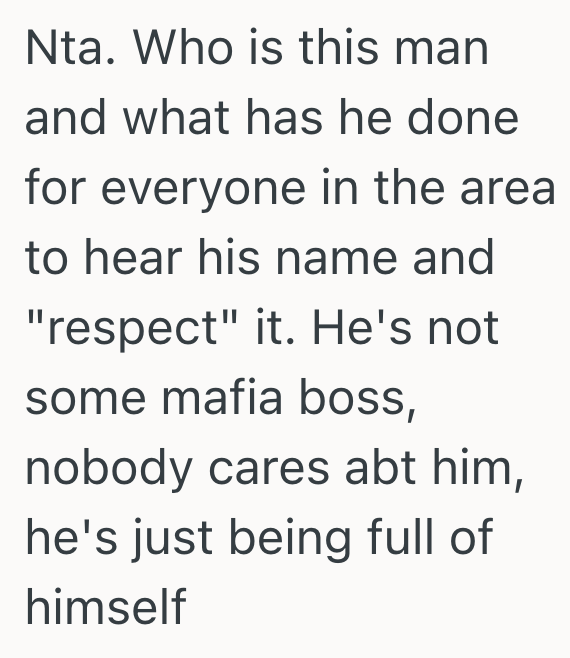 My FIL said he had to have a serious conversation with me, and he began talking about how great and wonderful his last name is and how people will automatically respect me in his community just because I would have the same name as him.
