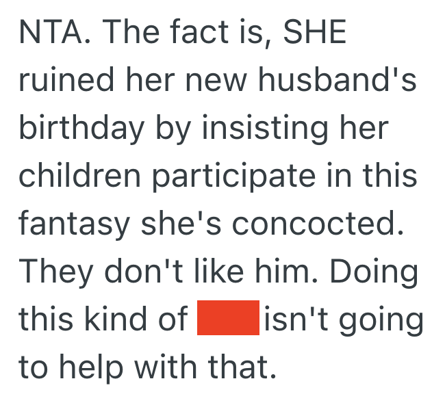 The kids explained why they didn’t want to celebrate the stepdad’s birthday.
