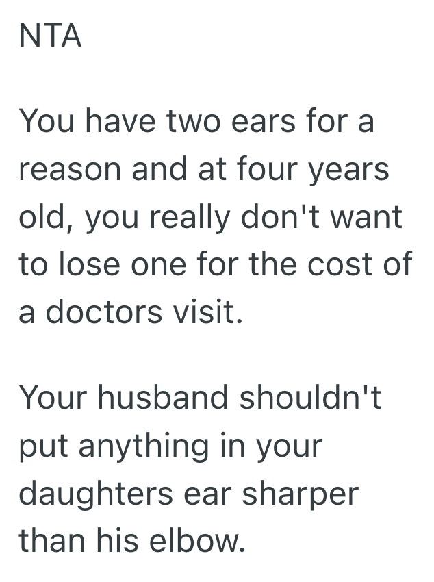 Her husband’s careless approach to something so important left this couple with a lot more to address than an ear ache.