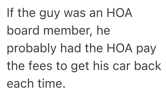 The best part was that a number of my neighbors would have their cars parked there at the same time and they’d never have their cars towed which made it all the better when his was.