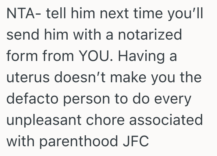 I told him the passport process is his responsibility too, but he thinks that since I’ll be waiting in line anyway, I should have respected his time and made it as quick as possible for him by giving him the notary option so he doesn’t have to go and interrupt his day to come in person.