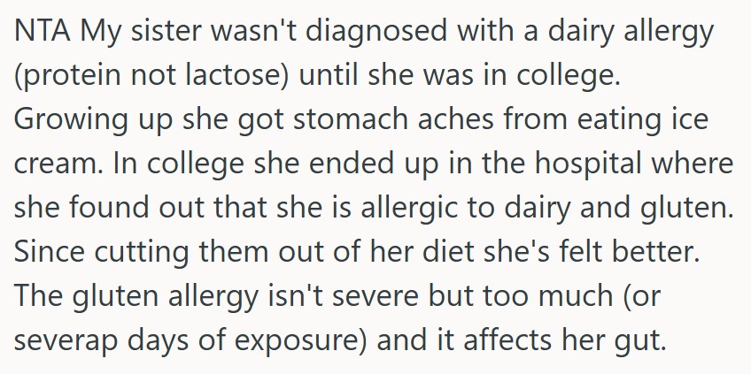 She Started Eating Dairy Free When She Left For College, But Her Parents Still Don’t Want To Accommodate Her Allergy