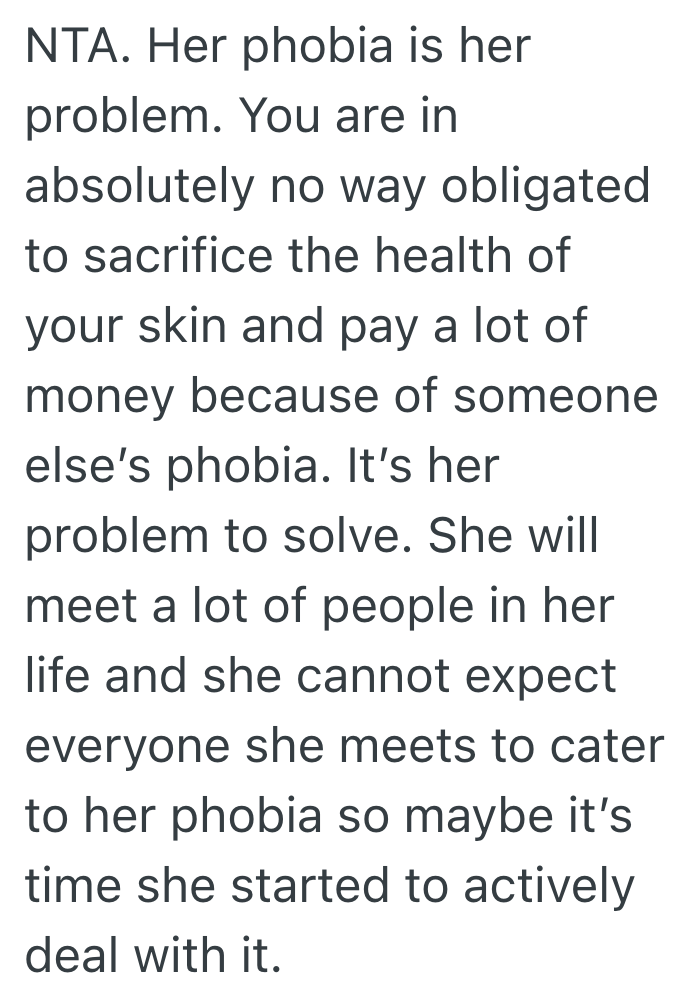 I explained that it wasn’t an option because it’s expensive and just worsens my acne.
