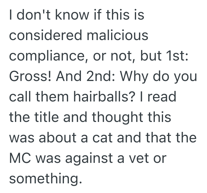 She left a note on my door saying “Hello, please contain your hairballs ok? :)”