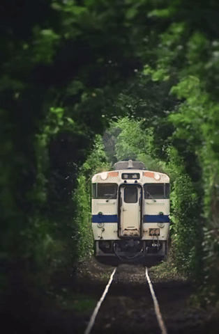 – Train going through a perfect forest tunnel