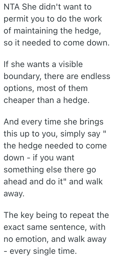 Doing this really upset my neighbor, who said that the hedge was the only thing denoting where my garden ended and hers began.