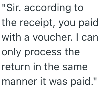 Looks at us and I smile at him and say, “I never left the store and I would like to get a refund for this please.”