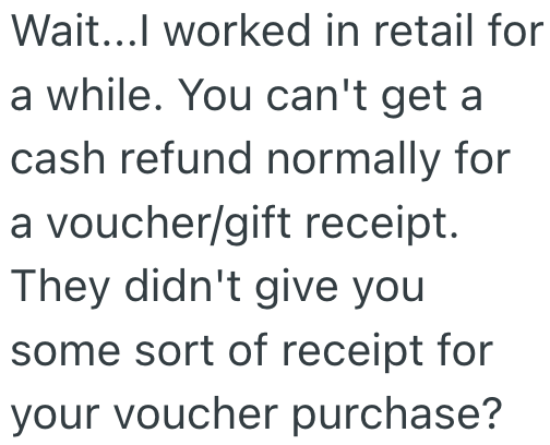 She tells me that I stepped out of the store so she can’t refund.