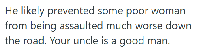 But my uncle always said when asked about, that if he sent the guy to prison, it would be for molesting my mom and hurting my dad.
