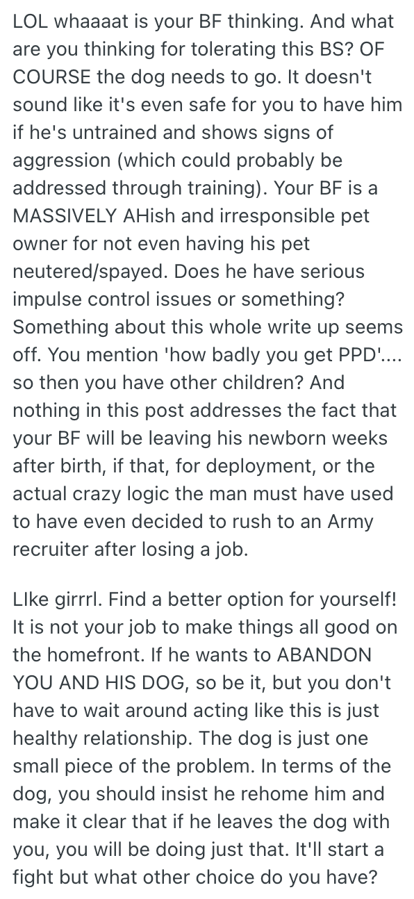 Tags: · aggressive dog, aita, army boyfriend, dog, dog behavior, misbehaving dog, motherhood, newborn, parent of newborn, parenthood, picture, post-partum depression, ppd, reddit, relationship drama, stories, top