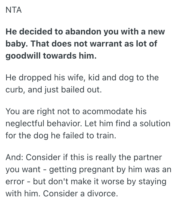I told him he needs to make temporary plans for his dog, because I absolutely do not want to deal with him while also caring for a newborn baby completely alone.