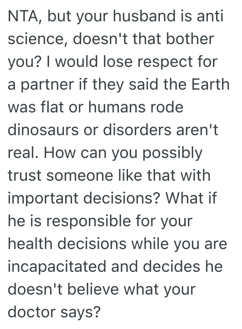 (I think it stems from insecurity, his family has a lot of stigma around mental health/wellness/neurodivergence.)