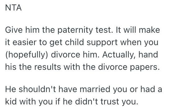 I have been considering allowing a paternity test as I have nothing to hide, but I feel like if I did then the trust would all be gone.