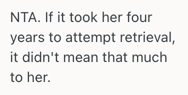This woman got rid of her ex-boyfriend’s family’s things that were left at her apartment, but she waited a long time to get rid of things that she knew were sentimental.