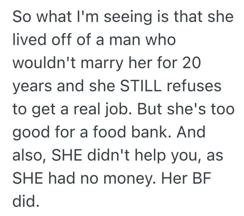 It is also important to note, that when she was with her ex, they would often help their friends make ends meet financially. She has helped me and my family more than once.
