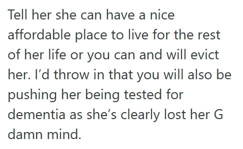 That’s right! This user suggests kicking the mother out for being so entitled.