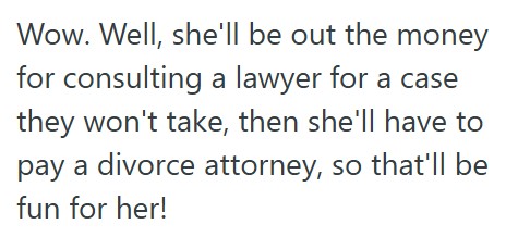 That’s right! This user thinks the mom will soon go broke for hiring a lawyer.