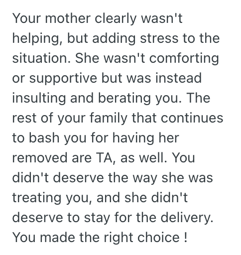 AITA for kicking my mom out of the delivery room?