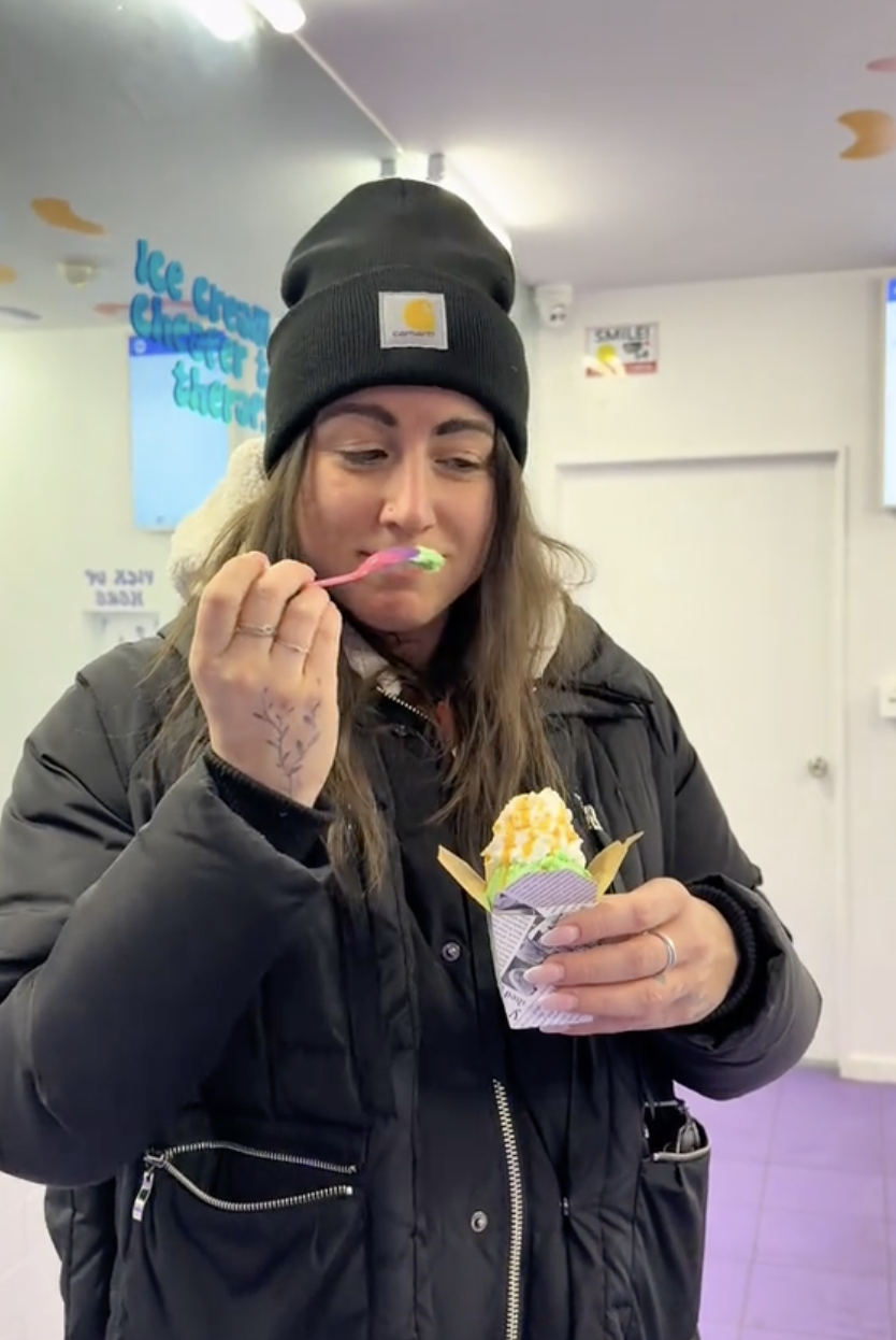 Mary placed her order and told viewers, “Alright, so this is expensive ice cream. Here’s my order.”