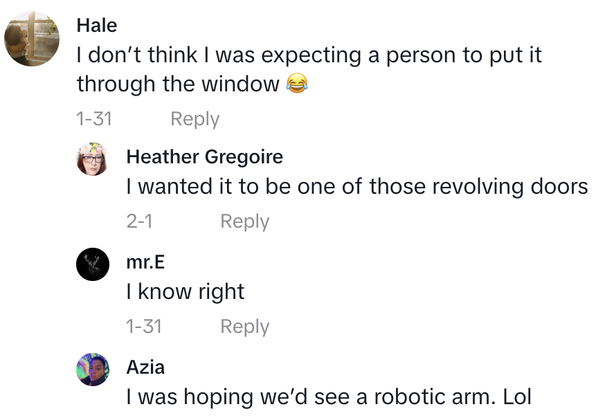 A voice announced “Order #110 for Mary” and a piece of the wall opened up and Mary was presented with her ice cream.