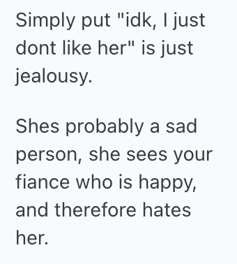 She was never saying or doing anything to her face but just trash talking my fiancée behind her back to no end.