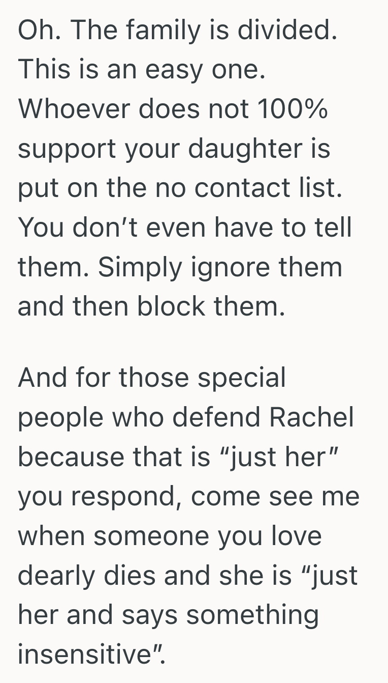 Even if Rachel did apologize, even the most heartfelt words couldn’t undo the damage.