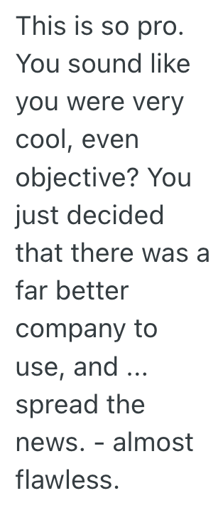 He said that he couldn’t do anything about it since it was a separate side of their company and begged for the business back.