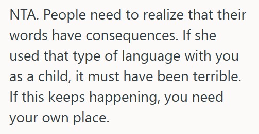 True that! This user knows that mom needs to deal with the consequences of her words now.