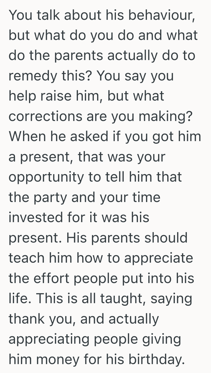 To this Redditor it sounds like the parents and the aunt are missing several important “teaching moments”.
