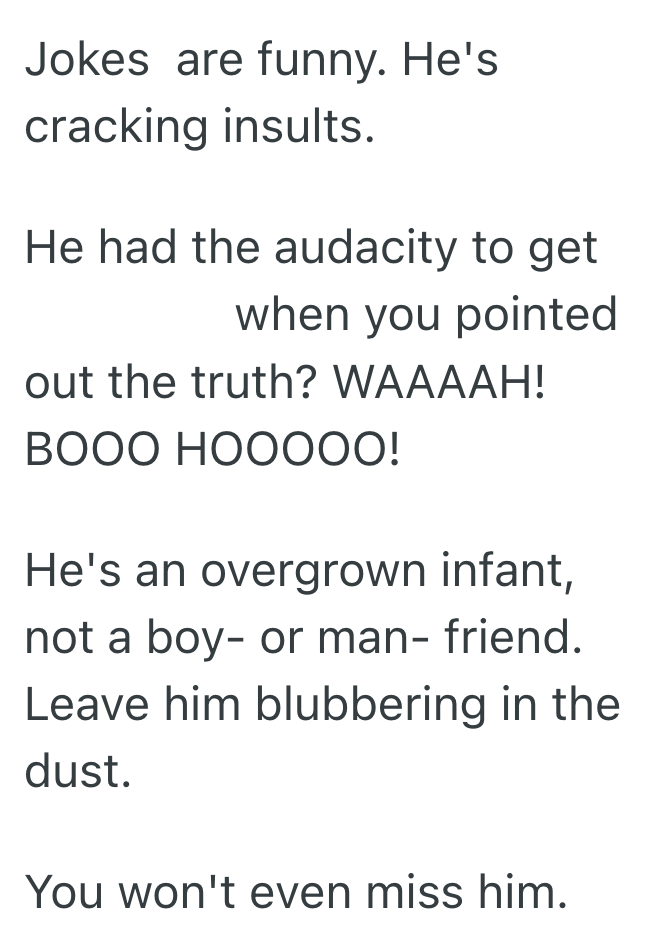 In this commenter’s eyes, the boyfriend got exactly what he deserved.