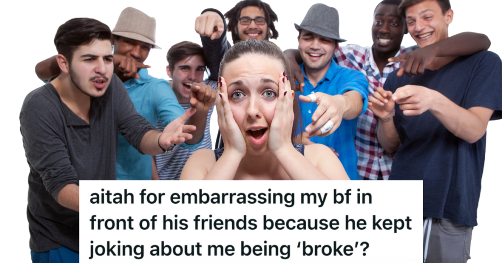 aitah for embarrassing my bf in front of his friends because he kept joking about me being ‘broke’?