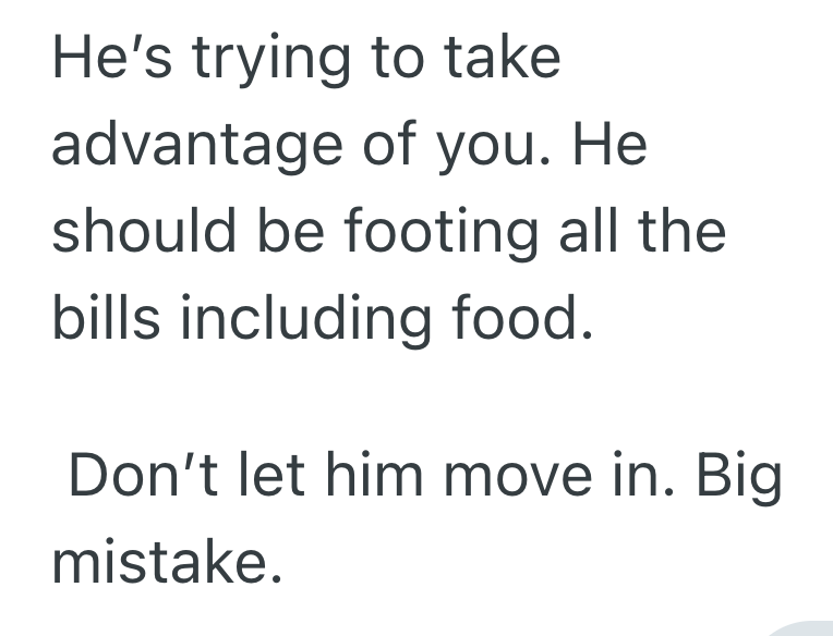 So would I be footing the larger part of the living expenses and sharing my space and routines with him, his pet, and his lifestyle?