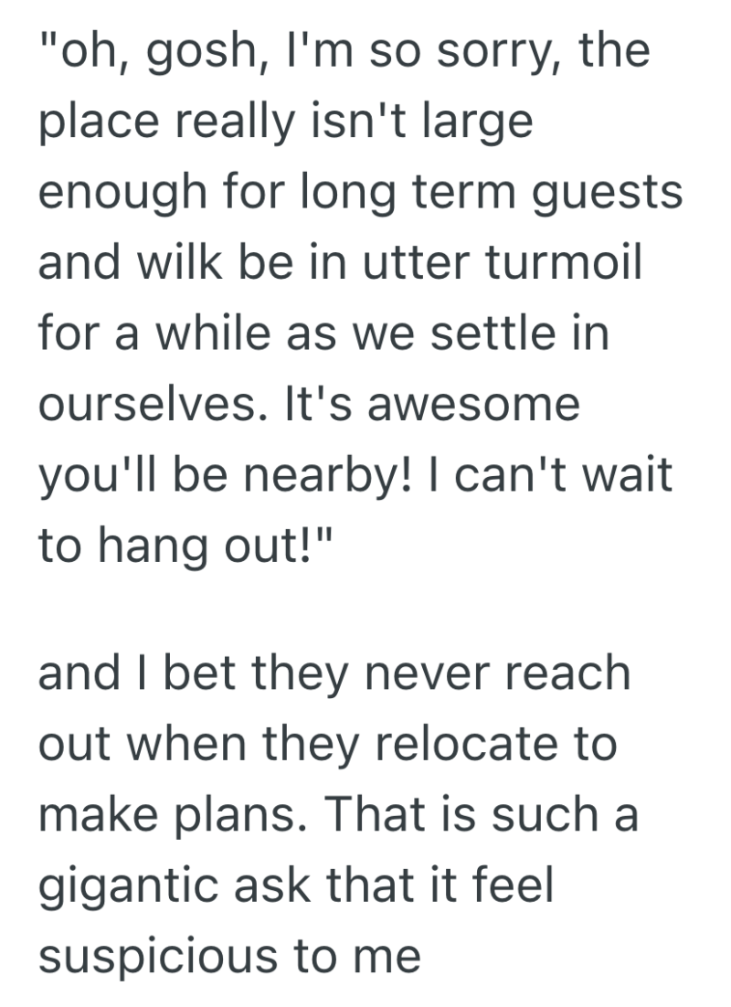 I would feel like a huge a****** telling them no and having that uncomfortable confrontation, but something tells me as first time homeowners we’d be frustrated If we immediately let them move in when we haven’t settled in ourselves.