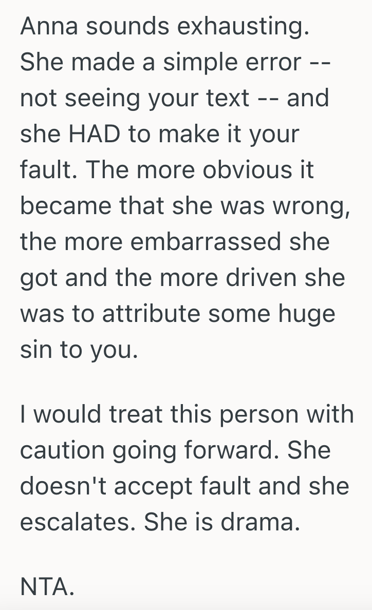 She was furious that I “didn’t even text in the group” and that she “waited there like a stupid person.”