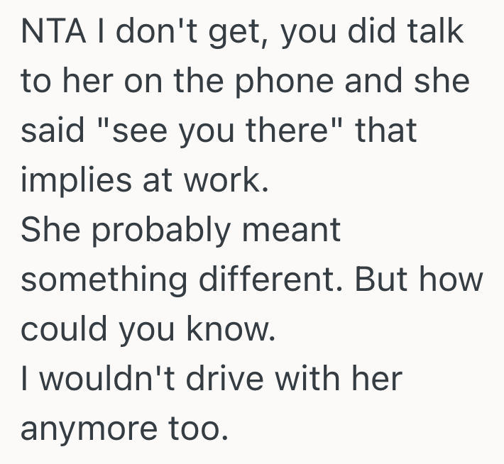 AITA for not personally texting my coworker that I wouldn’t be riding with her?