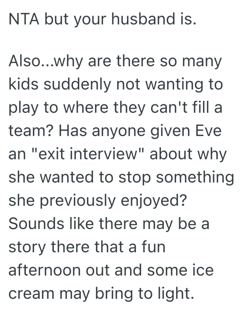 This person says absolutely NTA, and that something is fishy about the baseball team…