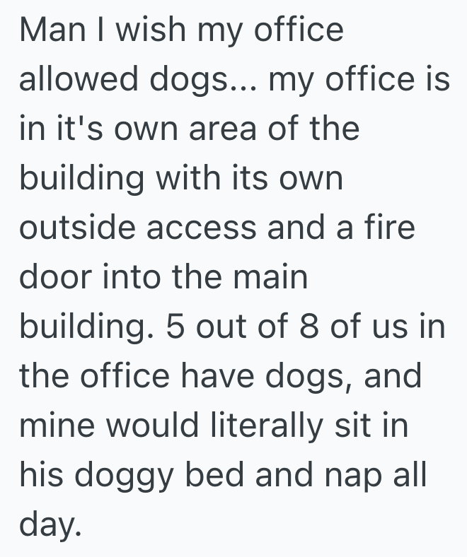 Now imagine working in an office where everyone brings their dog to work but you don’t have a dog.