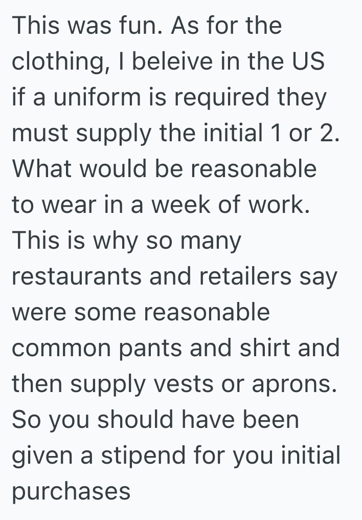 It had something to do with them requiring employees to wear their clothing, which was funny considering I knew those employees had been stealing the clothes anyway.