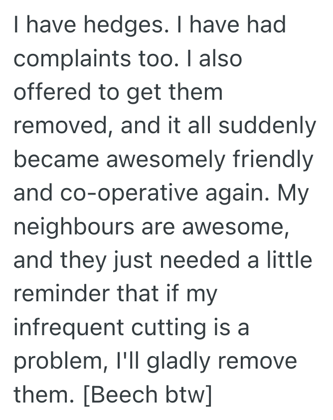Entitled Neighbors Complained About A Homeowner’s Hedges, But Changed Their Minds About Paying For Maintenance When Homeowner Threatened To Remove Them Altogether