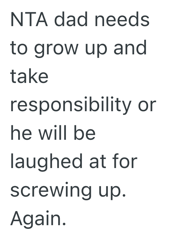 The dad needs to own up to his mistakes or start preparing better in advance.