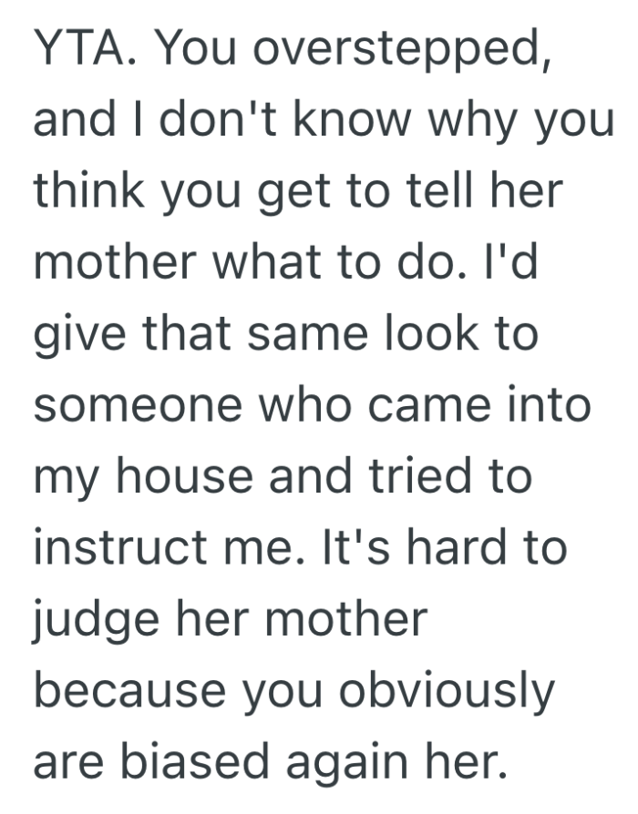 This person says even though Mom’s behavior isn’t great, talking to her like that is worse.