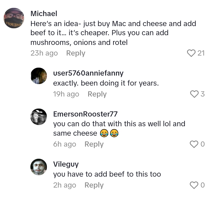 “So you’re actually getting more Hamburger Helper with the regular than the deluxe. And all you’re doing with the deluxe is putting your own butter in it. This is how you’re being scammed.”