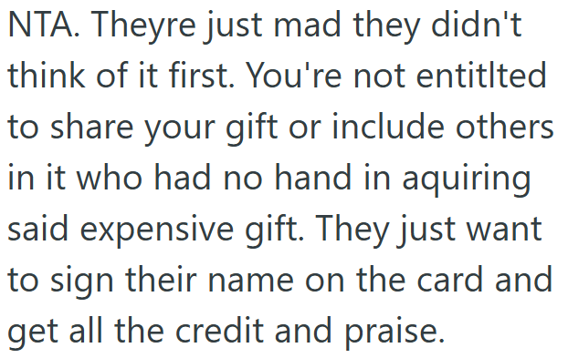 She said I knew he’d love it and should have considered the benefit of it being a joint gift.