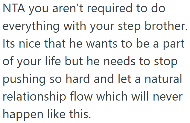 But I know it might bother my dad. I don’t think he’ll care that I didn’t include my stepbrother but I know things could get messy because of my choice.