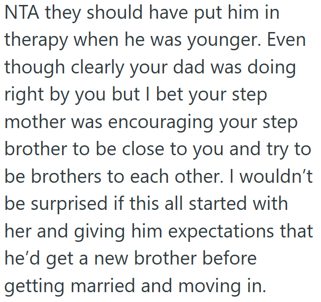 She gave in and made her son move into his own room. But my stepbrother acted out for ages after that.
