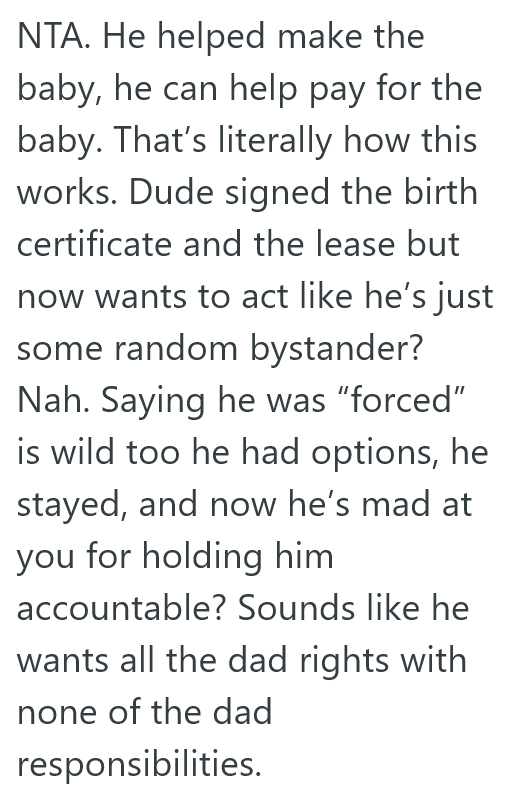 Wow. It doesn’t sound like he’s going to be a very good dad, but he is one whether he likes it or not. That means he does owe her child support.